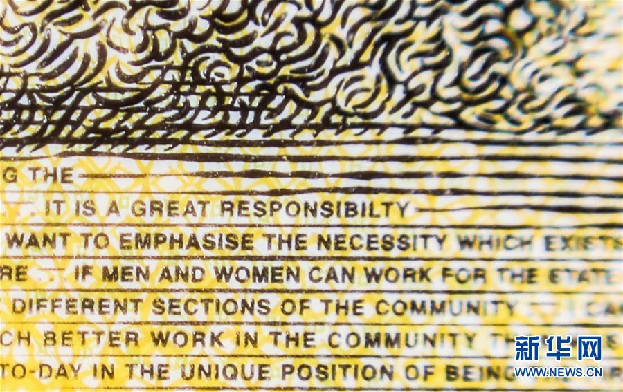 澳大利亚热心人士发现澳新版50元纸币出现拼写错误。澳大利亚央行5月9日承认出现的排印错误(“responsibility”被拼成“responsibilty”,字母“l”后面少了“i”),并表示将在下轮印刷中改正。这是5月10日在悉尼拍摄的澳大利亚新版50元纸币。新华社记者 白雪飞 摄