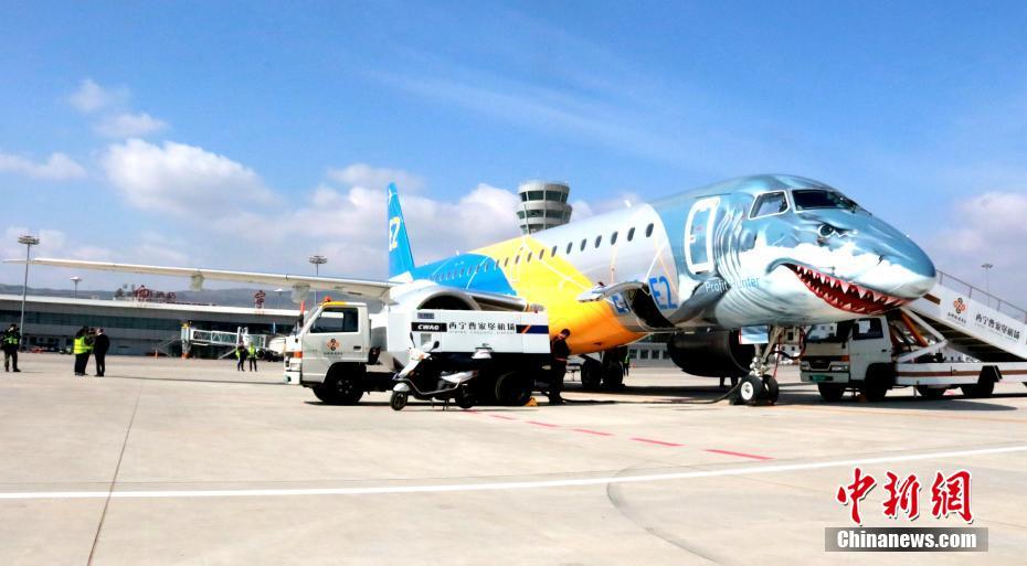 5月10日,巴西航空工业公司最新款E190-E2型客机亮相青海,将通过静态展示和演示飞行的方式,检验该机型在青藏高原运行的适航性、经济性,为中国高高原机场运行提供更多机型选择。中新社记者 孙睿 摄