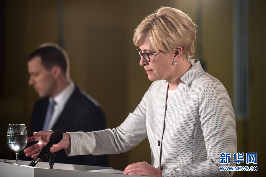 5月13日,在立陶宛首都维尔纽斯,祖国联盟-立陶宛基督教民主党人党提名的候选人、前财长因格丽达·希莫尼特在首轮投票最终结果出来后出席记者招待会。新华社发(阿尔弗雷达斯·普里亚迪斯摄)