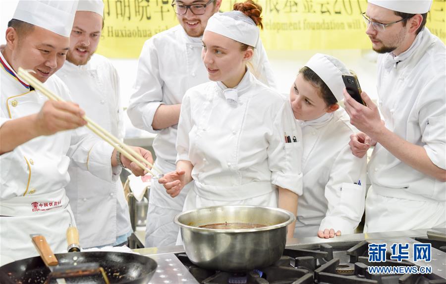 5月13日,在新西兰首都惠灵顿理工学院,西厨班学员学习中国火锅和重庆小面的基本做法。 当日,作为新西兰2019“中国旅游文化周”文化交流活动的一部分,来自中国重庆的大厨给惠灵顿理工学院的西厨学员上了一场别开生面的中国美食普及教学课。 新华社记者 郭磊 摄