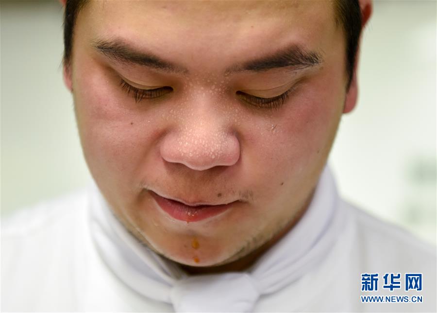 5月13日,在新西兰首都惠灵顿理工学院,一名西厨班学员鼻上渗出汗珠。 当日,作为新西兰2019“中国旅游文化周”文化交流活动的一部分,来自中国重庆的大厨给惠灵顿理工学院的西厨学员上了一场别开生面的中国美食普及教学课。 新华社记者 郭磊 摄
