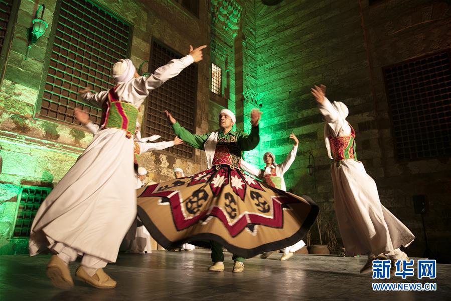 5月13日,苏菲舞者在埃及首都开罗表演。 苏菲舞起源于土耳其,其特点是在旋转中完成舞蹈动作。如今,埃及的苏菲舞已成为当地著名的演出形式之一。 新华社发(艾哈迈德·戈马摄)
