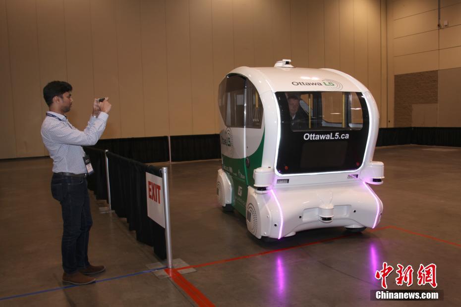 当地时间5月13日,在多伦多举行的“Discovery”创新展上,一个联网无人自动驾驶汽车项目进行现场展示,该项目正在加拿大首都渥太华进行测试。该创新展是加拿大创新领域规模最大和最具影响力的年度活动之一。中新社记者 余瑞冬 摄