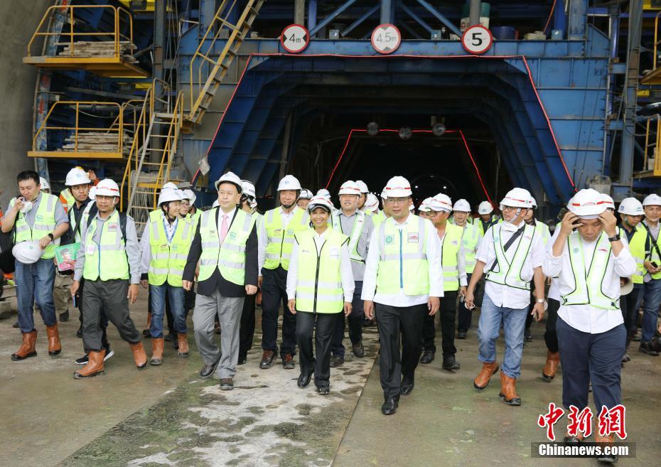 5月14日,印尼雅万高铁瓦利尼隧道贯通,成为该线路首条贯通隧道,标志雅万高铁建设进入全面提速阶段。图为参加贯通仪式的嘉宾参观隧道。中新社记者 林永传 摄