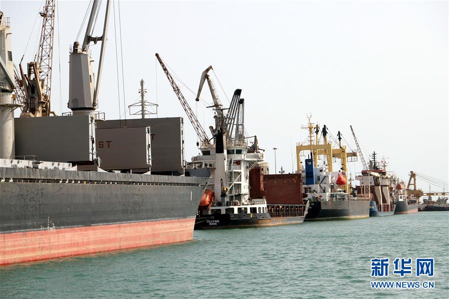5月14日,在也门荷台达港,货轮停在港口。 联合国领导的重新部署协调委员会14日发表声明说,欢迎胡塞武装将也门港口移交给海岸警卫队。 新华社发