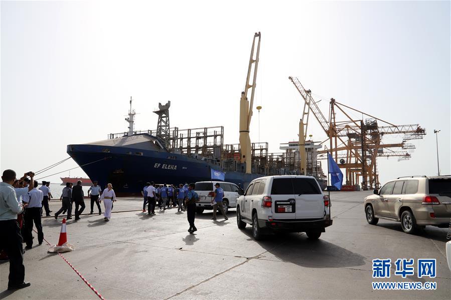 5月14日,在也门荷台达港,重新部署协调委员会人员抵达港口视察。 联合国领导的重新部署协调委员会14日发表声明说,欢迎胡塞武装将也门港口移交给海岸警卫队。 新华社发
