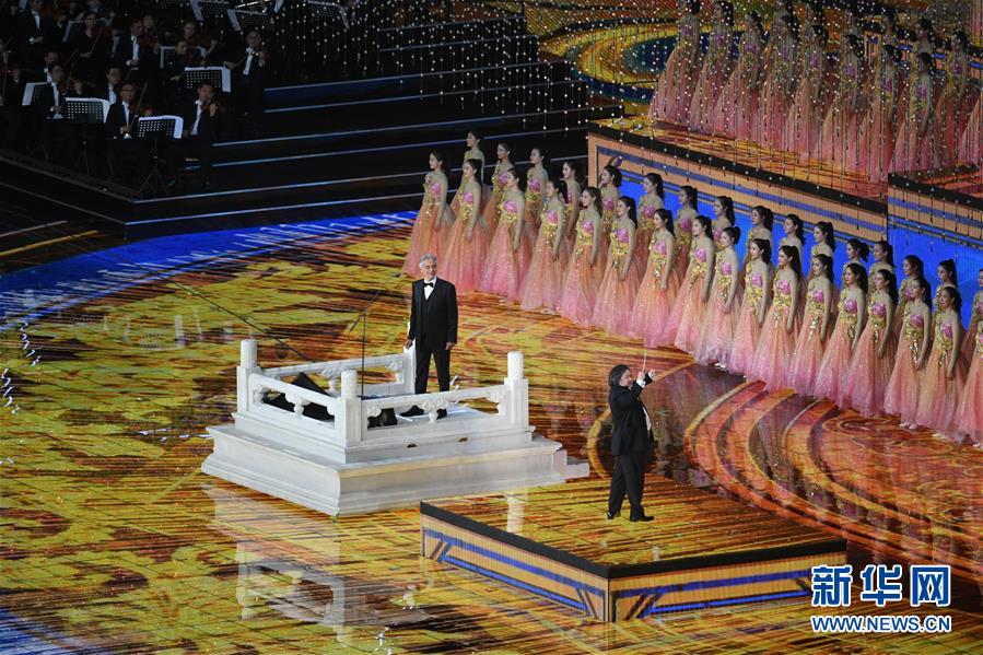 5月15日,亚洲文化嘉年华活动在北京“鸟巢”举行。这是领唱合唱《今夜无人入睡》。 新华社记者 张晨霖 摄