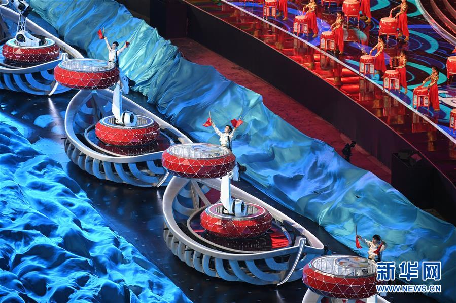 5月15日,亚洲文化嘉年华活动在北京“鸟巢”举行。这是打击乐《鼓舞飞扬 百舸竞渡》。 新华社记者 张晨霖 摄