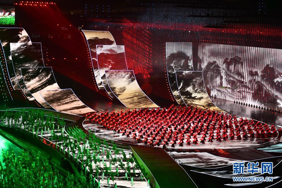 5月15日,亚洲文化嘉年华活动在北京“鸟巢”举行。这是武术节目《墨之韵》。 新华社记者 张晨霖 摄