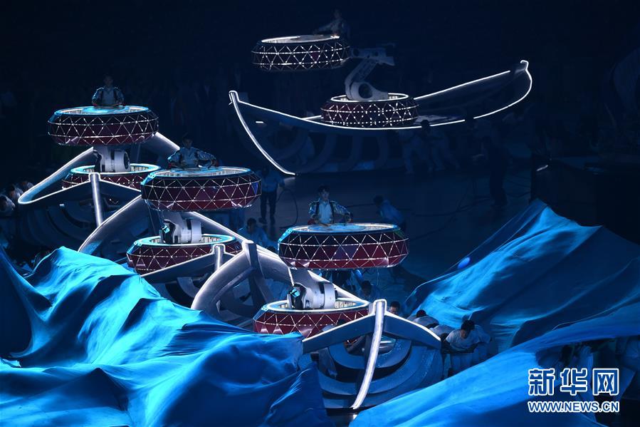 5月15日,亚洲文化嘉年华活动在北京“鸟巢”举行。这是打击乐《鼓舞飞扬 百舸竞渡》。 新华社记者 金良快 摄