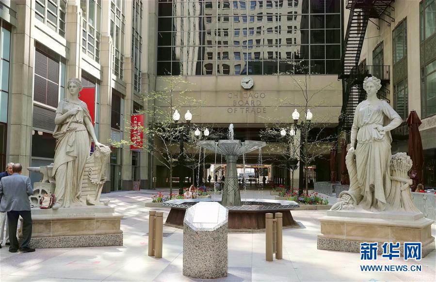 这是5月15日拍摄的美国芝加哥市中心的芝加哥期货交易所大楼外景。 芝加哥期货交易所玉米、小麦和大豆期价15日全线上涨。 新华社记者汪平摄