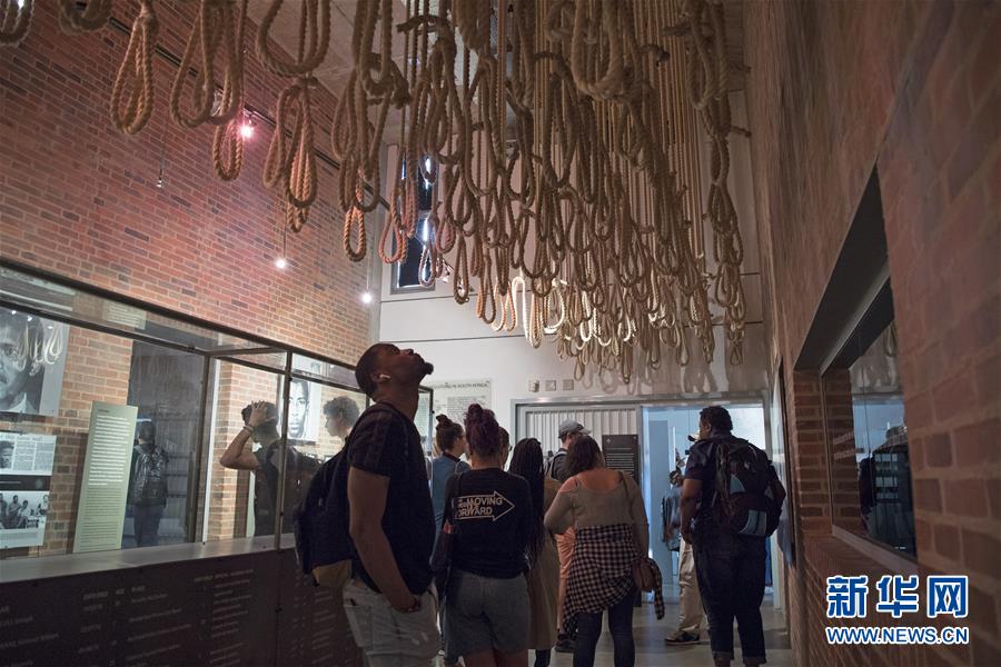 5月17日,游客在南非约翰内斯堡种族隔离博物馆内参观。 南非种族隔离博物馆于2001年建成并向公众开放。博物馆通过文字、图片、视频和上百件实物向每一位参观者揭露了南非种族隔离时期的黑暗,同时也展示了南非结束种族隔离政策以来,这个国家如何从“黑白分明”发展成“彩虹之国”。 新华社记者 陈诚 摄
