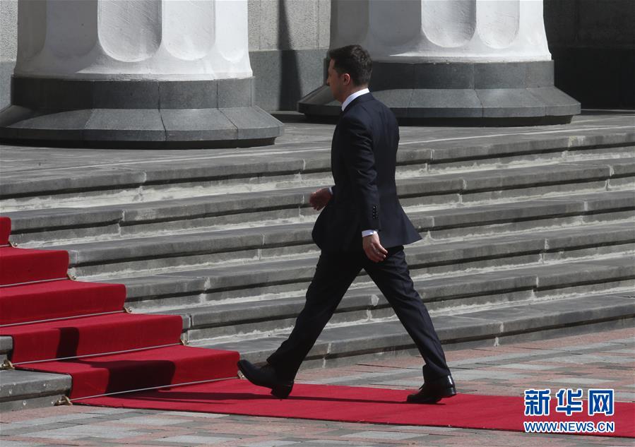 5月20日,在乌克兰首都基辅市,乌克兰当选总统泽连斯基走在通往议会的红地毯上。 乌克兰当选总统泽连斯基20日在乌克兰最高拉达(议会)大会上宣誓就职,任期5年。 新华社发(谢尔盖摄)