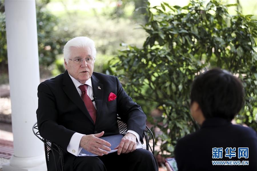 在美国南路易斯安那港,港口官员保罗·奥库安接受采访(2月27日摄)。 新华社记者 王迎 摄