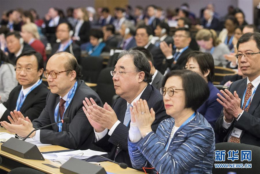 5月20日,在位于瑞士日内瓦的联合国万国宫,中国代表出席世卫大会开幕式。 第72届世界卫生大会20日在日内瓦开幕。 新华社记者 徐金泉 摄