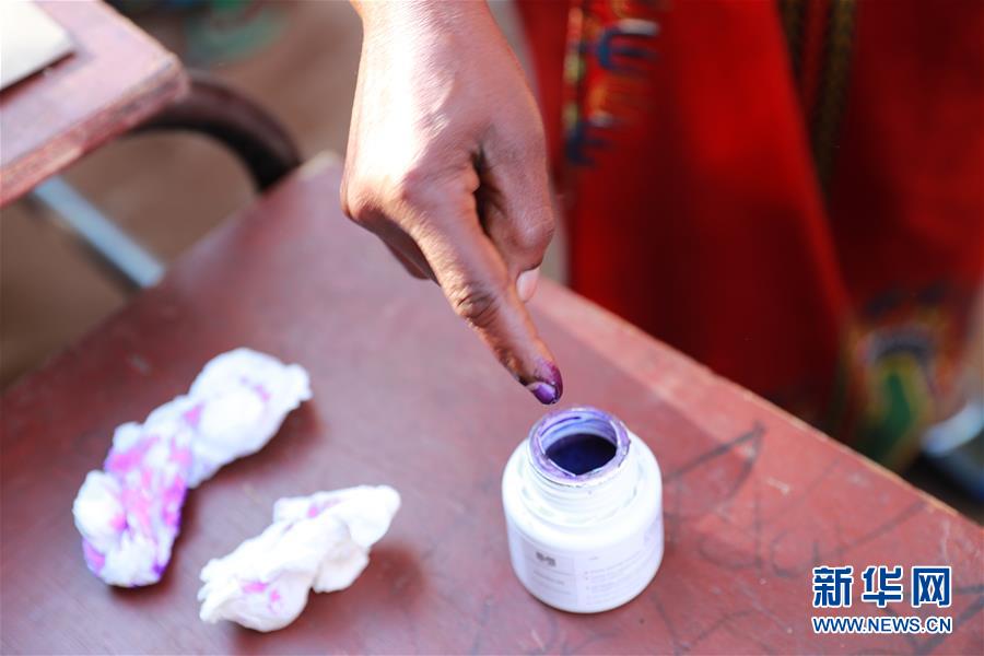 5月21日,在马拉维布兰太尔一处投票站,一名选民在手指上蘸墨水。 南部非洲国家马拉维21日举行总统、议会和地方政府“三合一”选举。这是马拉维自1994年以来举行的第六次多党制大选,680多万登记选民将在全国5002个投票站投票,选出总统、193名国会议员和462名地方议员。投票于当地时间6时开始,将于18时结束。 新华社记者彭立军摄
