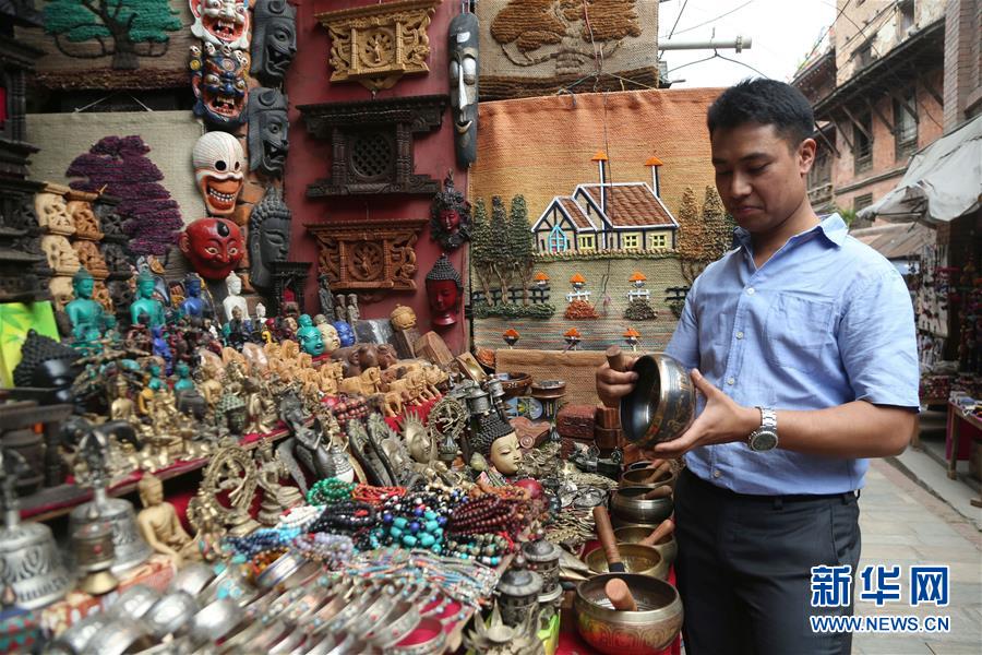 5月15日,在位于尼泊尔巴德岗的一个市场里,毕内亚在为中国的朋友选购礼品。新华社发(苏尼尔·夏尔马摄)