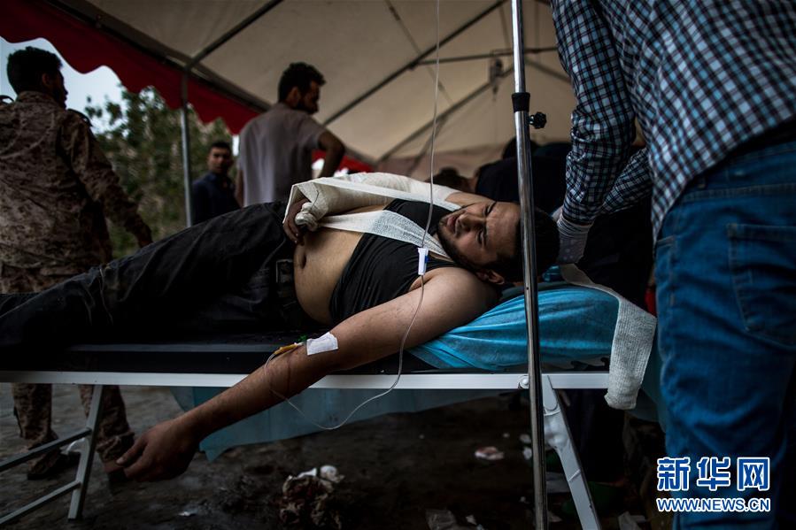 5月21日,在利比亚首都的黎波里,一名支持利比亚民族团结政府的武装人员在接受医治。 联合国秘书长利比亚问题特别代表加桑·萨拉姆21日向安理会通报利比亚局势时警告说,利比亚正濒于全面内战的边缘。 新华社发(阿姆鲁摄)