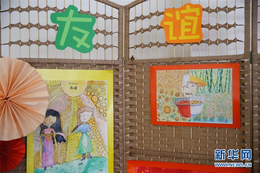 这是5月21日在匈牙利首都布达佩斯匈中双语学校拍摄的学生绘画作品。 位于匈牙利首都布达佩斯第15区的匈中双语学校是中东欧唯一同时使用当地语言和中文教学的全日制公立学校。从以中国学生为主到匈牙利学生占绝大多数,匈中双语学校创立十五年来的学生结构变化,显示出中文和中国在匈牙利日益受到重视。 (配本社同题文字稿) 新华社记者 郑焕松 摄