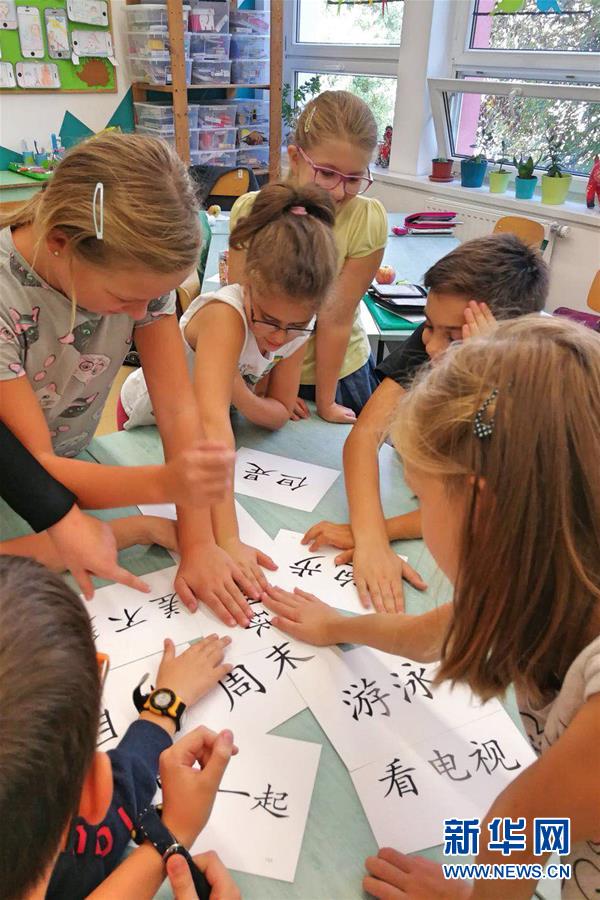 在匈牙利首都布达佩斯,匈中双语学校的学生在课堂上复习汉语生词(资料照片,2018年9月21日摄)。 位于匈牙利首都布达佩斯第15区的匈中双语学校是中东欧唯一同时使用当地语言和中文教学的全日制公立学校。从以中国学生为主到匈牙利学生占绝大多数,匈中双语学校创立十五年来的学生结构变化,显示出中文和中国在匈牙利日益受到重视。 新华社发(匈中双语学校供图)
