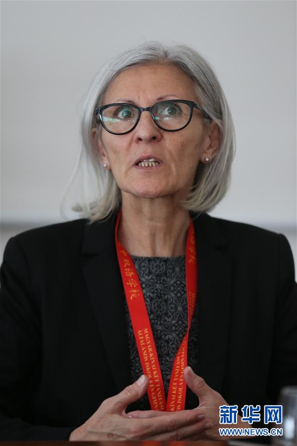 5月21日,在匈牙利首都布达佩斯,匈中双语学校匈方校长埃尔代伊接受记者采访。 位于匈牙利首都布达佩斯第15区的匈中双语学校是中东欧唯一同时使用当地语言和中文教学的全日制公立学校。从以中国学生为主到匈牙利学生占绝大多数,匈中双语学校创立十五年来的学生结构变化,显示出中文和中国在匈牙利日益受到重视。 新华社记者 郑焕松 摄