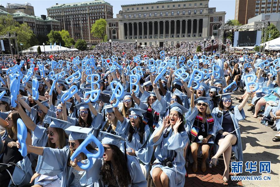 5月22日,在美国纽约哥伦比亚大学,毕业生参加2019年毕业典礼。 当日,哥伦比亚大学举行2019年毕业典礼,学校教职员工、毕业生及亲友等数万人参加仪式。据介绍,哥伦比亚大学2019年毕业生超过17000人,来自100多个国家和地区。 新华社记者 王迎 摄
