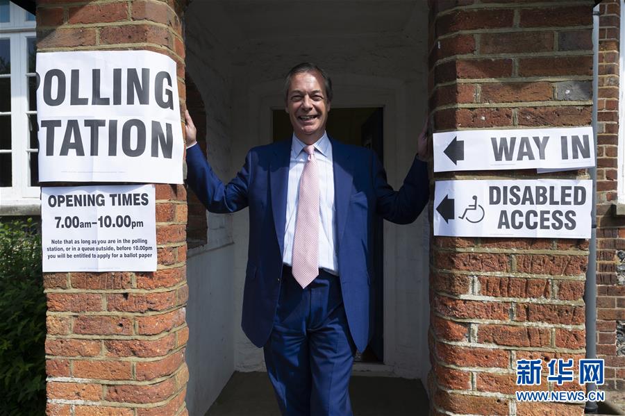 5月23日,在英国比金希尔,“脱欧党”领袖奈杰尔·法拉奇在投票后离开。 五年一次的欧洲议会选举于5月23日至26日举行。 新华社发(雷伊·唐摄)