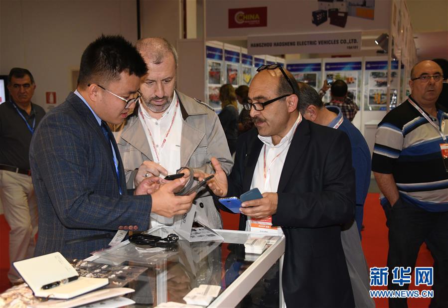 5月23日,参展商在土耳其伊斯坦布尔举行的第六届中国(土耳其)贸易博览会上推介产品。 当天,第六届中国(土耳其)贸易博览会在伊斯坦布尔开幕。本次博览会共有300多家中国外贸企业参展,吸引了众多来自土耳其和其他国家的采购商与会。 新华社记者 徐速绘 摄