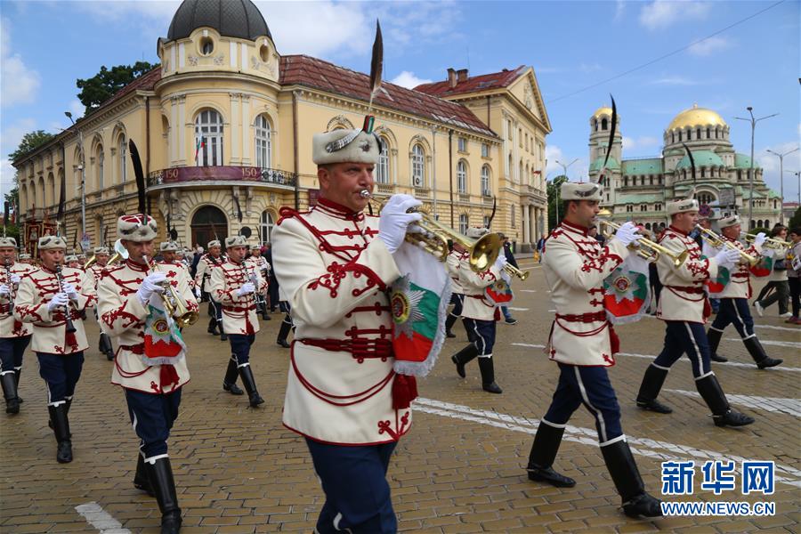 5月24日,在保加利亚首都索非亚,军乐队在庆祝仪式前的游行活动上演奏。 保加利亚总统拉德夫24日在首都索非亚举行的教育、文化和斯拉夫文字节(简称“斯拉夫文字节”)庆祝仪式上表示,在全球化不断推进的今天,各国应促进语言的多样性。 新华社记者 战小漪 摄