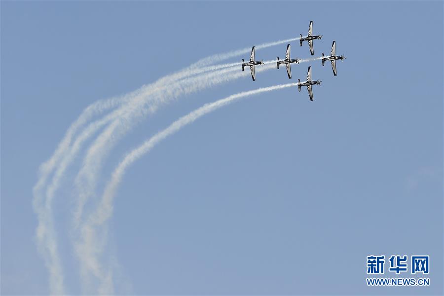 这是5月25日在南非比勒陀利亚新任总统就职仪式上拍摄的飞行表演。 南非新任总统西里尔·拉马福萨的就职仪式25日在行政首都比勒陀利亚的洛夫特斯球场举行。 新华社记者 陈诚 摄
