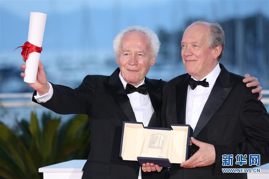 5月25日,在法国戛纳,最佳导演奖得主、影片《年轻的阿迈德》的比利时导演让-皮埃尔·达尔代纳(左)和吕克·达尔代纳两兄弟出席拍照式。 第72届戛纳电影节25日闭幕。 新华社记者 高静 摄