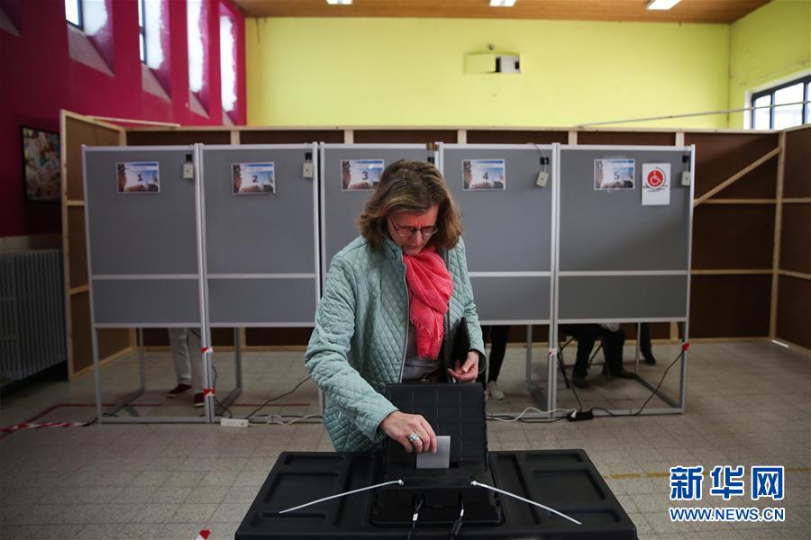5月26日,在比利时布鲁塞尔,选民在一处投票站投票。新华社记者 郑焕松 摄