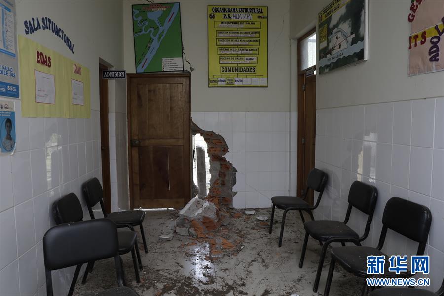 这是5月26日在秘鲁尤里马瓜斯拍摄的被地震破坏的房屋内部。 据秘鲁地球物理研究所公布的消息,秘鲁东北部当地时间26日凌晨2时41分(北京时间15时41分)发生7.5级地震,目前尚无人员伤亡和财产损失的报告。 新华社发