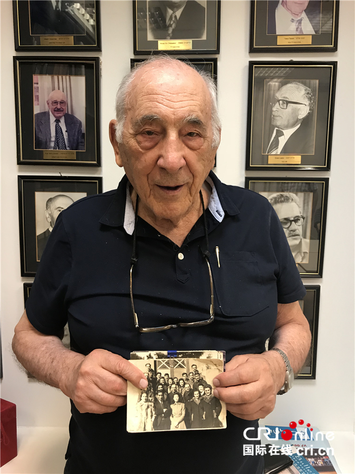 米勒拿着自己年轻时在中国的照片。(摄影孙伶俐)