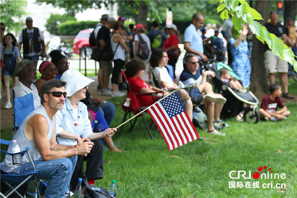 在华盛顿市中心宪法大道两旁观看“滚雷”摩托车大游行的人群。