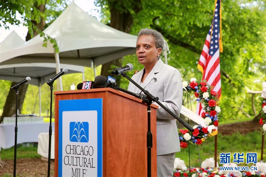 5月27日,在美国芝加哥,芝加哥市长洛丽·莱特富特在阵亡将士纪念日活动上发表讲话。 当日,美国芝加哥举行纪念活动,缅怀在战争中牺牲的将士。 新华社记者 汪平 摄