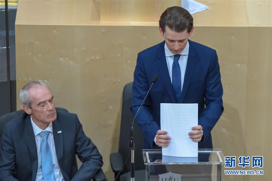 5月27日,在奥地利维也纳,奥地利总理库尔茨(右)出席国民议会特别会议。 奥地利国民议会27日召开特别会议,通过了针对总理库尔茨及其内阁的不信任案。库尔茨及内阁部长都被罢免,库尔茨成为1945年奥地利第二共和国成立以来,首位遭国民议会罢免的总理。 新华社记者 郭晨 摄