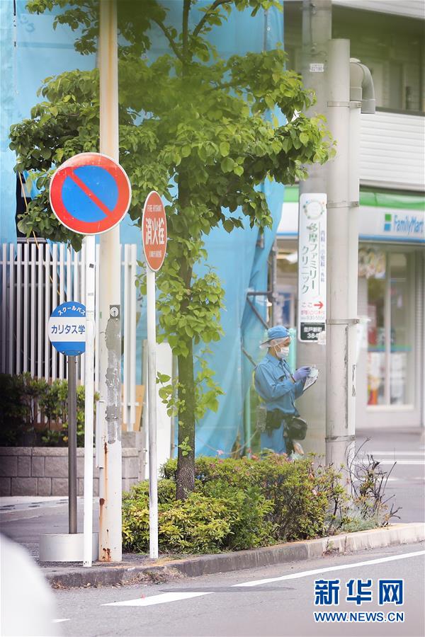 5月28日,在日本神奈川县川崎市,警方人员在案发现场的校车车站附近调查。日本神奈川县川崎市28日晨发生持刀伤人事件,一名男子持刀刺伤19人后试图自杀,被捕送医。新华社记者 杜潇逸 摄