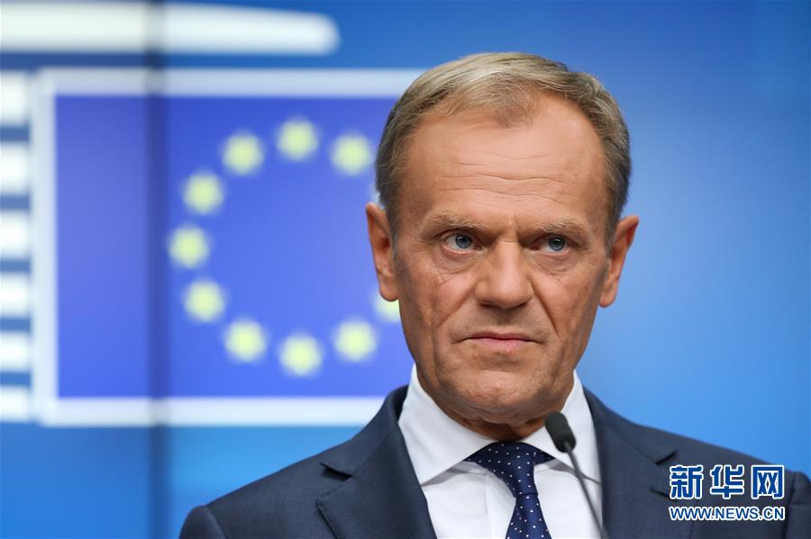 5月28日,在比利时布鲁塞尔的欧盟总部,欧洲理事会主席图斯克在新闻发布会上发言。 在5年一次的欧洲议会选举结束两天后,欧盟各国领导人28日晚齐聚布鲁塞尔举行非正式晚宴,就欧盟机构领导人换届展开磋商。哪些人会接任欧盟各大机构领导职务,尤其是谁来接替容克担任最为关键的欧盟委员会(欧委会)主席一职备受关注。由于欧盟相关规定并不清晰,各政治力量的利益诉求各不相同,究竟谁能“接班”颇具悬念。 新华社记者 张铖 摄