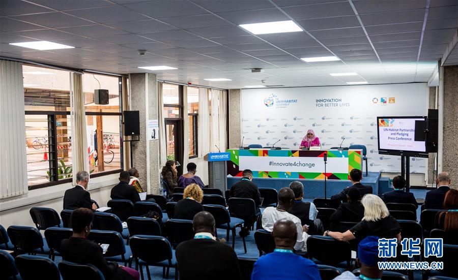 5月29日,在肯尼亚首都内罗毕,联合国人居署执行主任迈穆娜·穆赫德·谢里夫(后)在新闻发布会上发言。