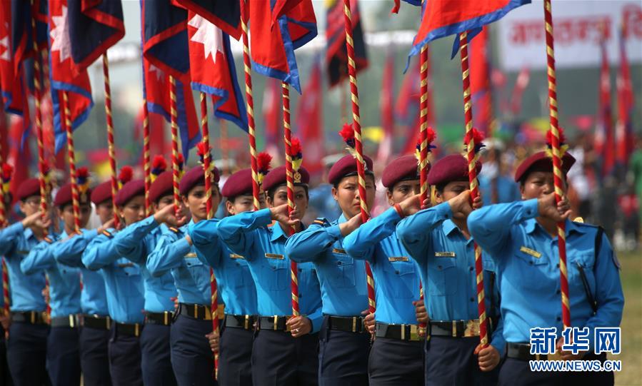 5月29日,在尼泊尔加德满都,警察参加共和日庆祝活动。 当日,加德满都举行活动庆祝尼泊尔共和日。2008年5月28日,尼泊尔制宪会议第一次全体会议通过了由尼泊尔临时政府提出的议案,宣布尼泊尔为联邦民主共和国。 新华社发(苏尼尔·夏尔马 摄)