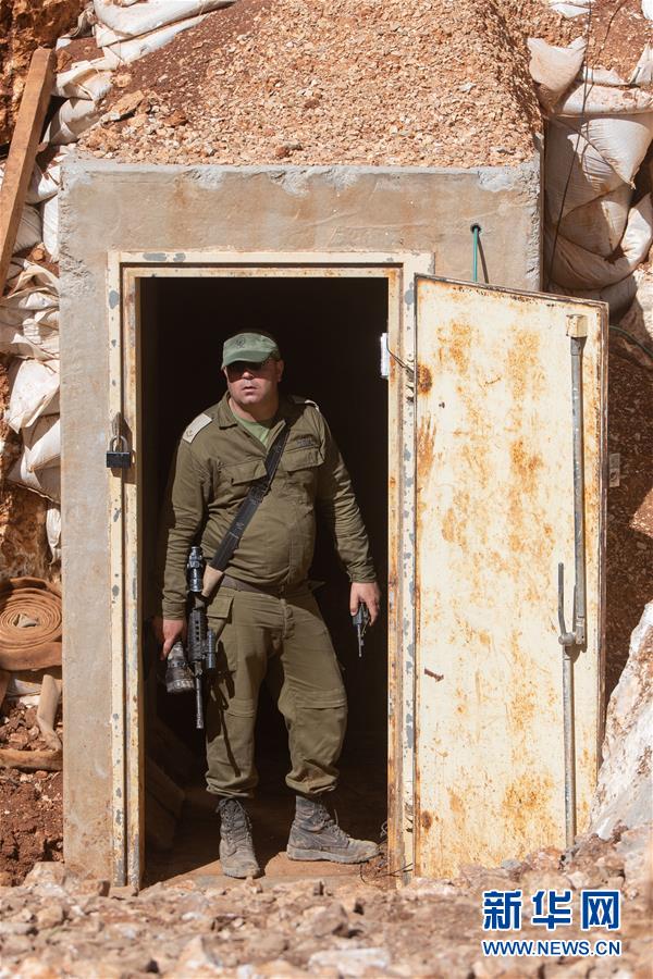5月29日,在黎以边境,一名以色列士兵站在黎巴嫩真主党修建的跨境地道口。 以色列国防军30日宣布,以军摧毁了一条由黎巴嫩真主党修建的从黎巴嫩南部延伸至以色列境内的主要跨境地道。 新华社/基尼图片社