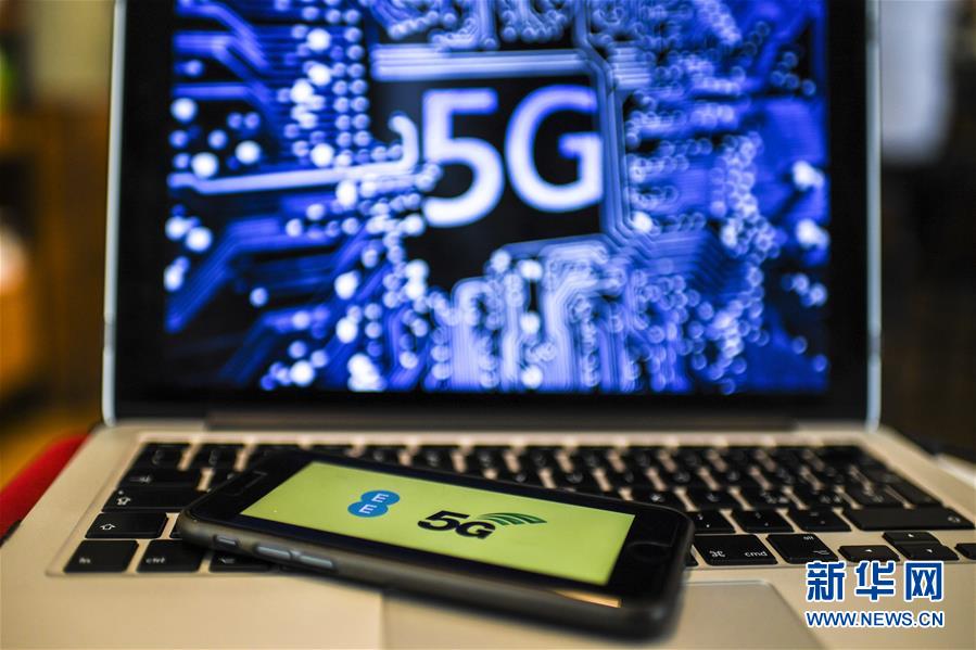 这是5月30日在英国伦敦拍摄的展示5G标识的手机和电脑。新华社发(佩扎利摄)