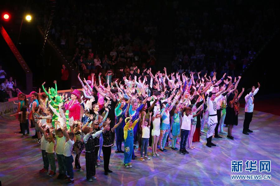 6月1日,在乌克兰首都基辅,第四届乌克兰“金栗子”国际青少年杂技艺术节获奖选手集体亮相向观众致意。