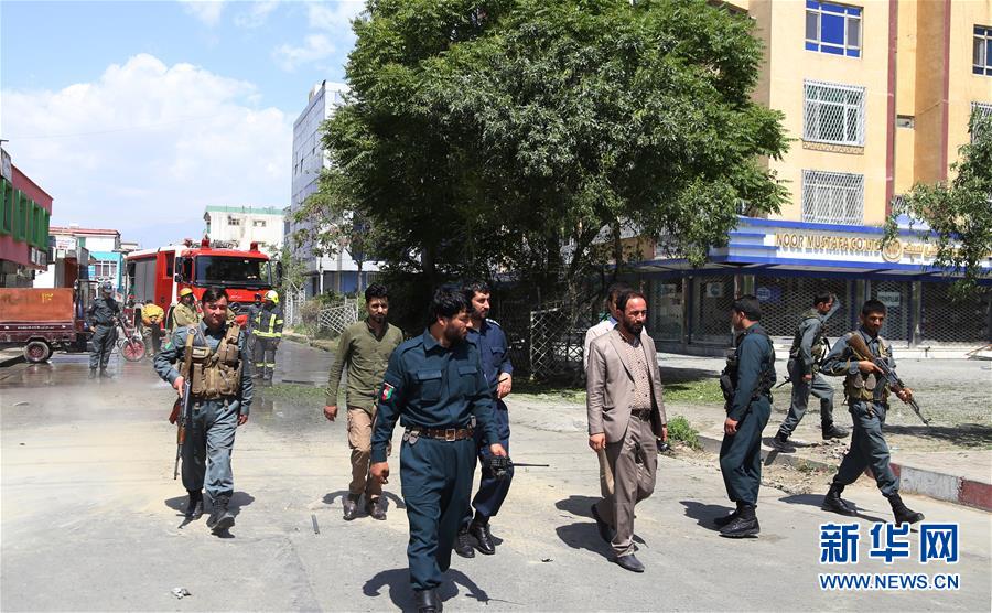 6月2日,在阿富汗首都喀布尔,安全人员检查爆炸现场。 新华社发(拉赫马特·阿里扎达 摄)
