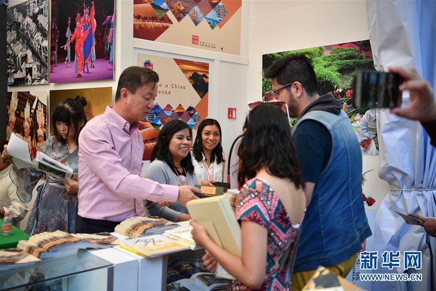 6月1日,在墨西哥首都墨西哥城举行的第十一届墨西哥城国际友好文化博览会上,中国展台吸引民众驻足。 5月31日起,中国元素陆续亮相第十一届墨西哥城国际友好文化博览会(友博会)。数十名社交媒体“超级粉丝”成为传播中国文化“新使者”。中国国家展推出以“中国旅游文化周”为主题的系列活动,结合航空公司和旅行社推介精品旅游线路。 新华社记者 辛悦卫 摄