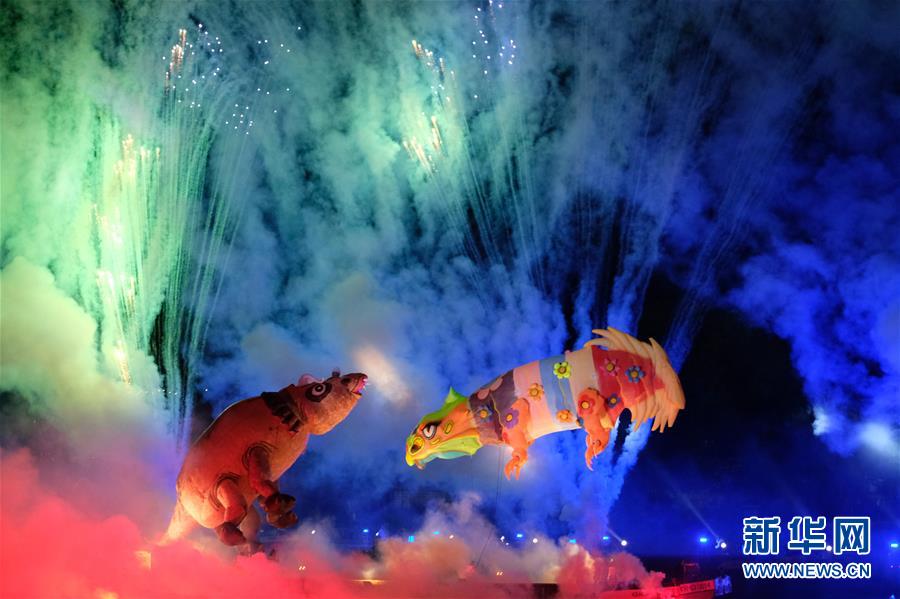 6月1日,在波兰克拉科夫,“巨龙”在维斯瓦河上表演。 当日,波兰克拉科夫市迎来了第19届“游龙节”。灯光烟火秀作为“游龙节”最精彩的节目之一,吸引了数千名来自世界各地的游客前来观看。 新华社记者 周楠 摄