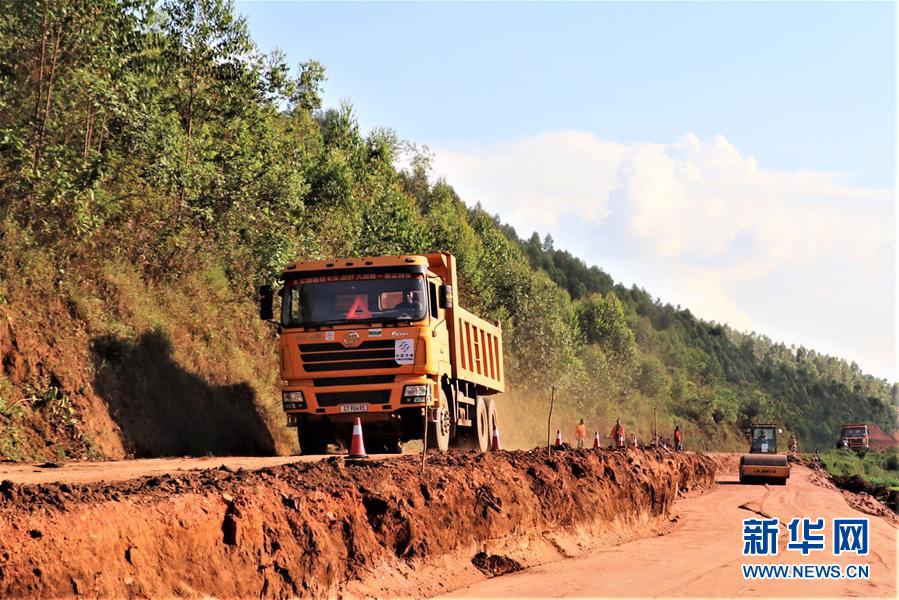 5月31日,在卢旺达南方省胡耶市,工人在卢旺达南方省道路升级项目现场施工。 这一项目由中国进出口银行提供优惠贷款、中国电建集团承建,为卢旺达南部地区重要城际公路工程,全长66.3公里,连通多座城镇。 新华社发(中国电建集团供图)