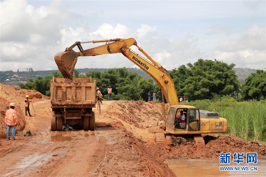 5月14日,在卢旺达首都基加利,工人在卢旺达新机场路升级改造项目现场施工。 这一项目由中国进出口银行提供优惠贷款、中国路桥公司承建,将对现有道路进行翻修并拓宽为双向四车道,全长约13.8公里。 新华社记者吕天然摄