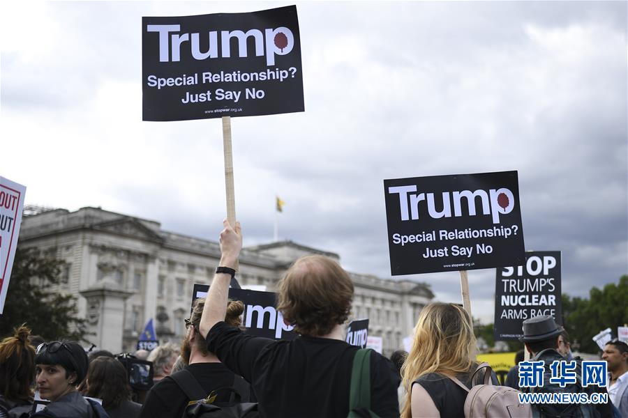 6月3日,在英国伦敦,人们聚集在白金汉宫外抗议美国总统特朗普访英。 新华社发(阿尔贝托·佩扎利摄)